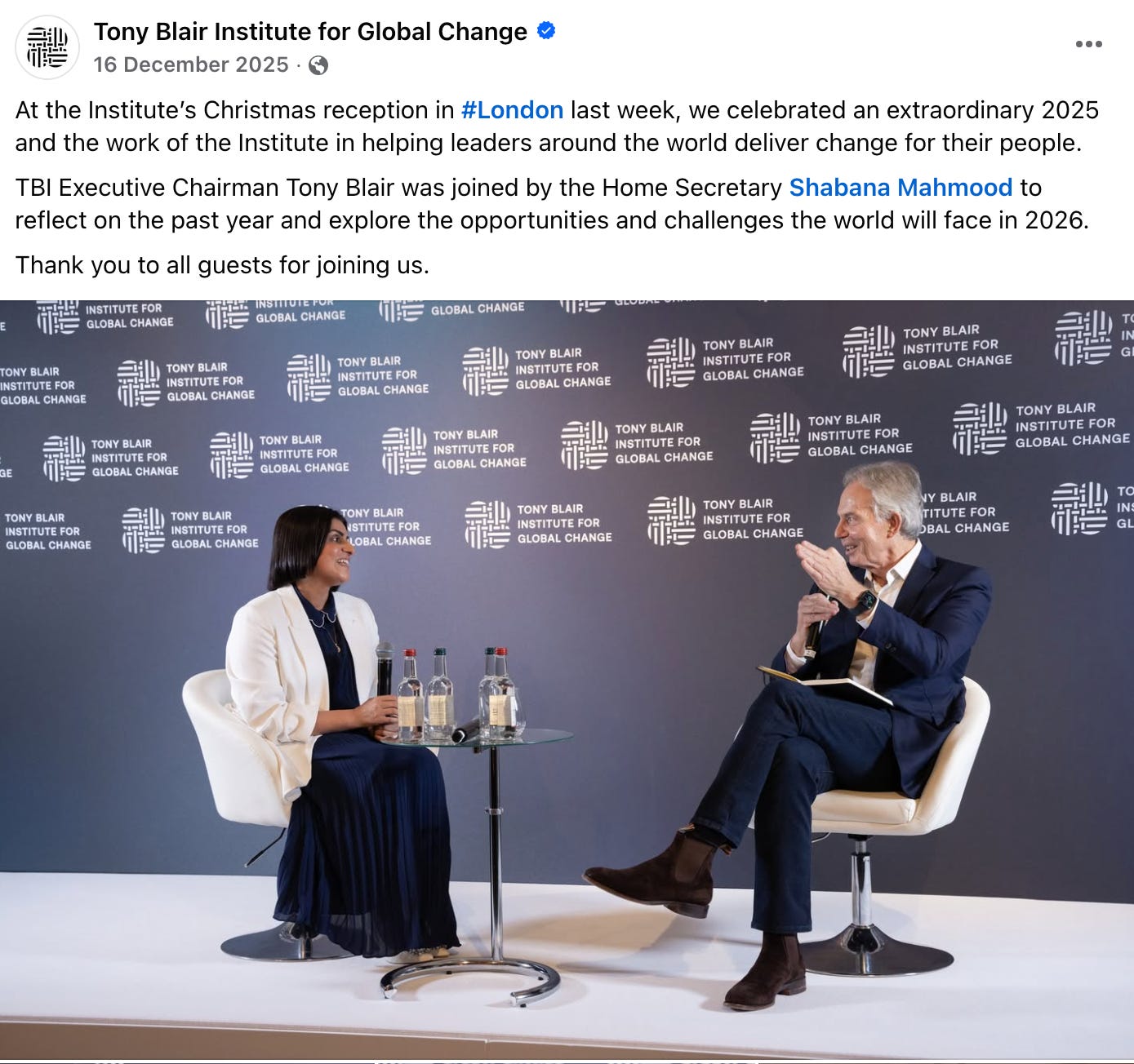 As per The Telegraph and confirmed by TBI’s social media, Shabana Mahmood was a guest at the TBI’s Christmas party on 10 December 2025, and she was interviewed by the man himself.