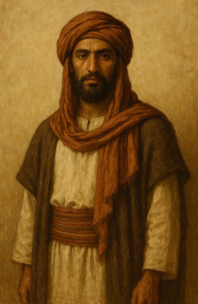 Can you generate an image of a 7th century Arab man, living in the Arabian peninsula, in traditional dress?